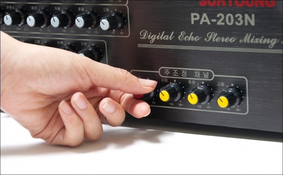 - Tín hiệu âm thanh đầu vào (micro, nhạc cụ, hoặc thiết bị phát nhạc) đi vào tầng pre-ampli để xử lý và nâng cấp mức tín hiệu.
